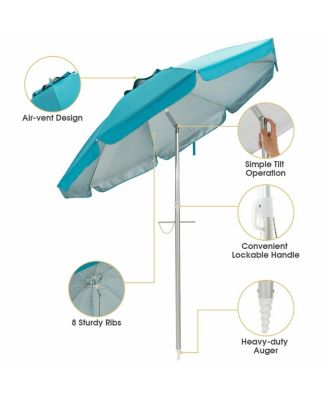 7.2 Feet Portable Outdoor Beach Umbrella with Sand Anchor and Tilt Mechanism-Multicolor