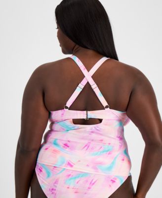Salt + Cove Trendy Plus Size Tie-Dye Drawstring Tankini Top, Created for Macy's