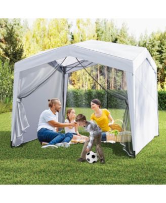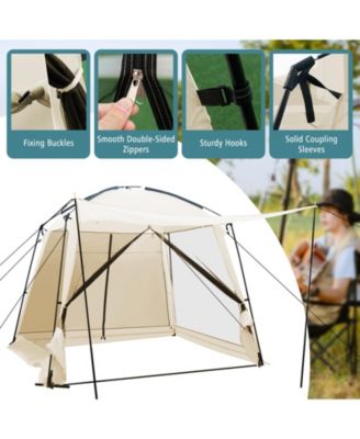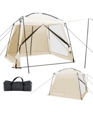 10 x 10 Feet Screened Canopy Tent w/ Vestibule and Zippered Door-Beige