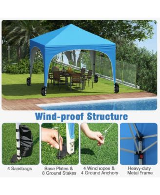10 X 10 FT Pop up Canopy Tent with 4 Sidewalls Mesh Netting Wheeled Bag 8 Stakes