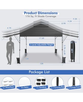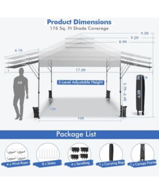 10 x 20 Feet Adjustable Folding Heavy Duty Sun Shelter with Carrying Bag