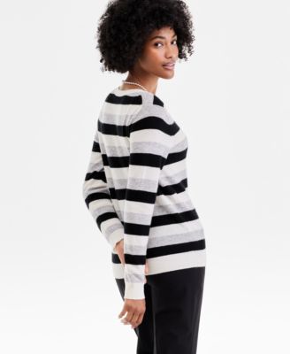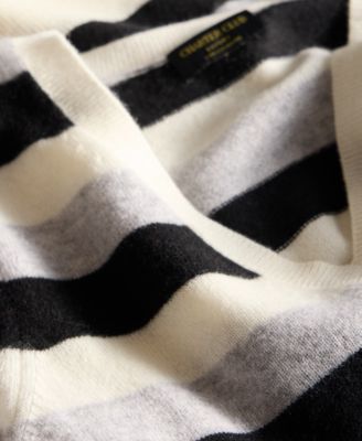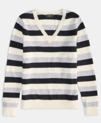 Petite Striped V-Neck Cashmere Sweater, Exclusively at Macy's