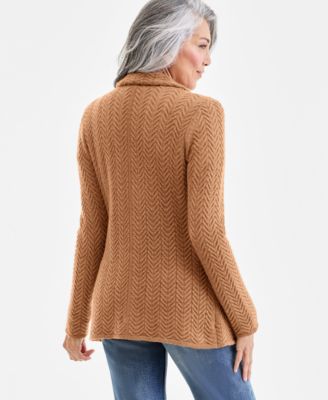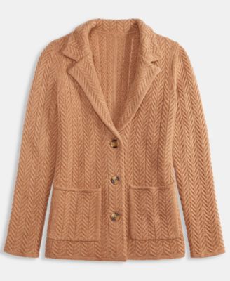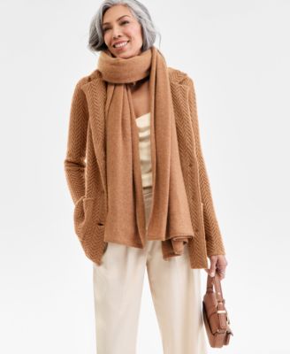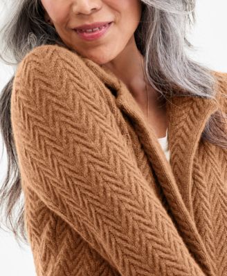Petite Herringbone-Stitch Button-Front Cashmere Jacket, Exclusively at Macy's