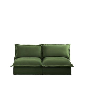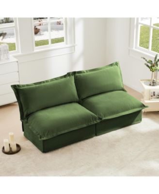 Slipcovered Armless Sofa with Convertible Design & Pillows, Green Chenille Fabric