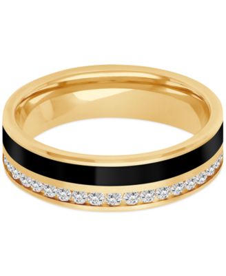 Men's Lab-Created White Sapphire (3/4 ct. t.w.) & Ceramic Stripe Band in 18k Gold-Plated Sterling Silver (Also in Black Sapphire)