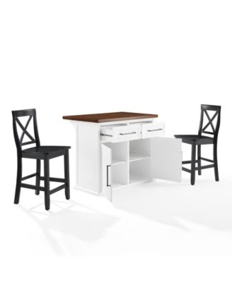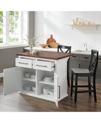 Oxford Butcher Block Top Kitchen Island With 24" Upholstered Saddle Stools