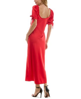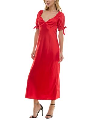 Juniors' V-Neck Puff-Sleeve Midi Dress