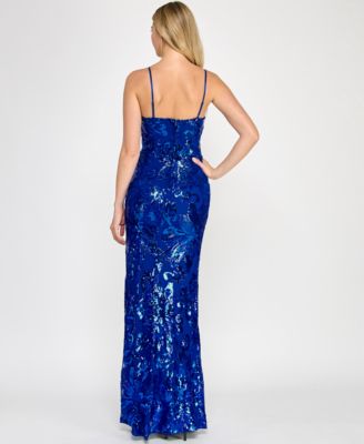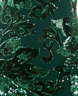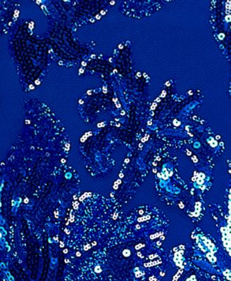 Juniors' Floral Sequined Sleeveless Gown