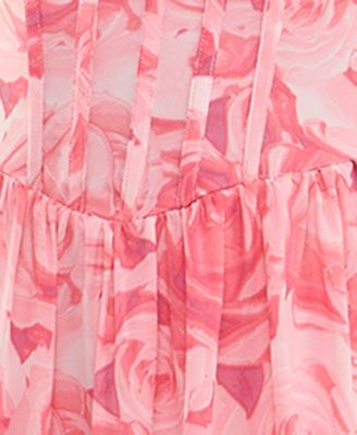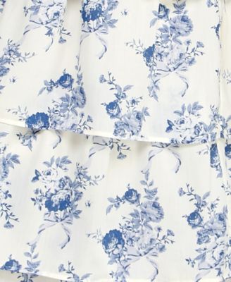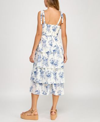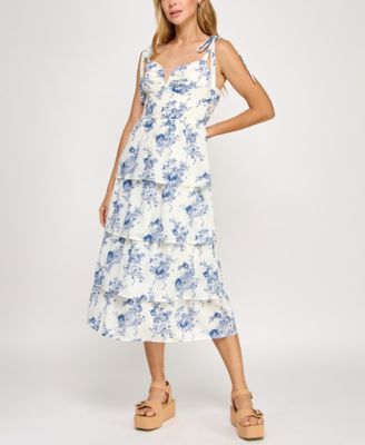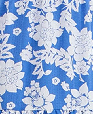 Juniors' Floral Print Tie-Shoulder Tiered Dress