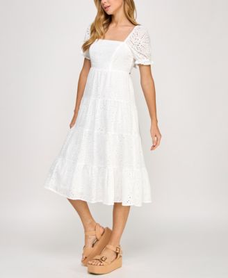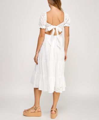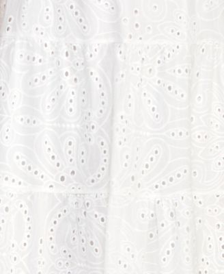 Juniors' Cotton Eyelet Tie-Back Tiered Dress