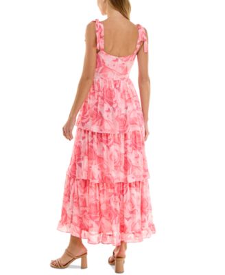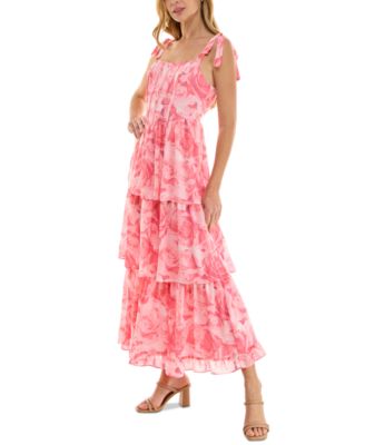 Juniors' Tie-Shoulder Tiered Chiffon Maxi Dress