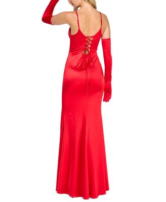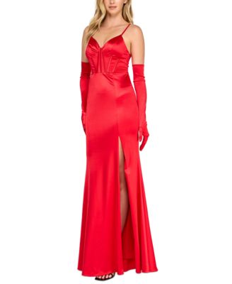 Juniors' Satin Corset Gown & Gloves