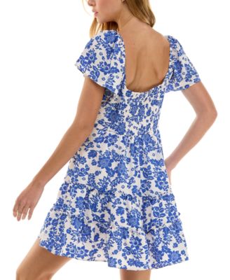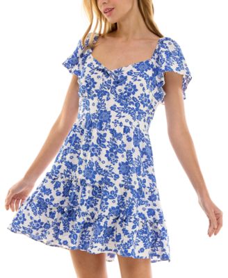 Juniors' Floral-Print Tiered Short Fit & Flare Dress