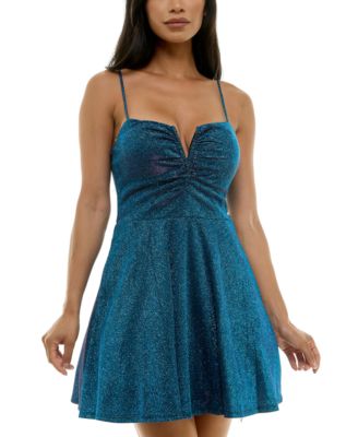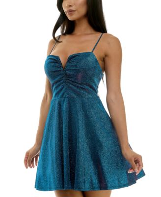 Juniors' Notch V-Neck Sleeveless Fit & Flare Dress