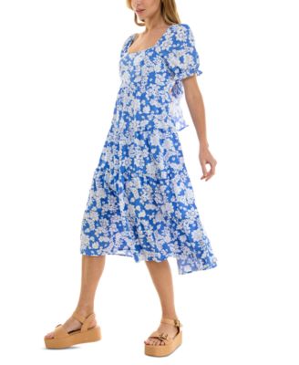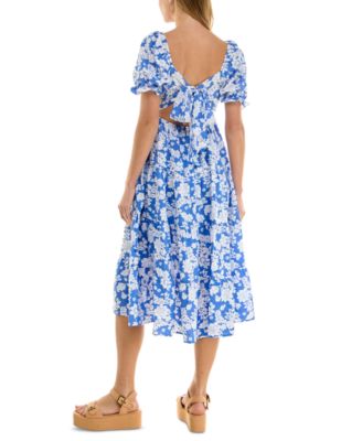 Juniors' Floral-Print Bow-Back Puff-Sleeve Woven Dress