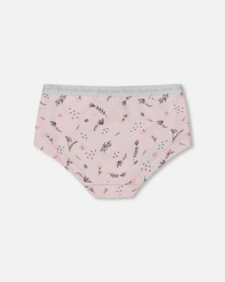 Girl Printed Cotton Boyshort Panty Pale Pink Flowers On Neutral Lilac - Toddler|Child