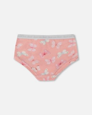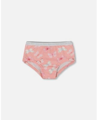 Girl Printed Cotton Boyshort Panty Pink And Blue Butterflies On Old Pink - Toddler|Child