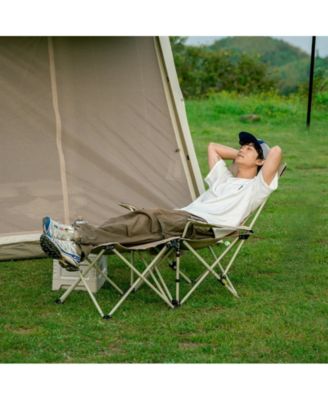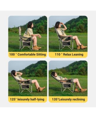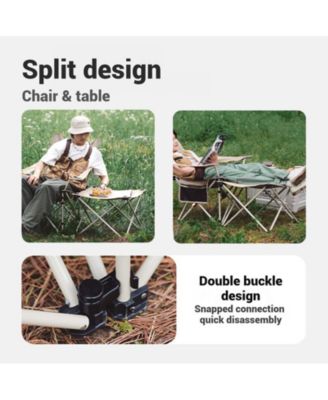 Outdoor Camping Recliner Chair with Side Table, Relaxing Folding Lounge Chair, Adjustable Tilt Chaise Lounge with Cup Holder, 600D Oxford Fabric, Max Weight Capacity 265 lbs.