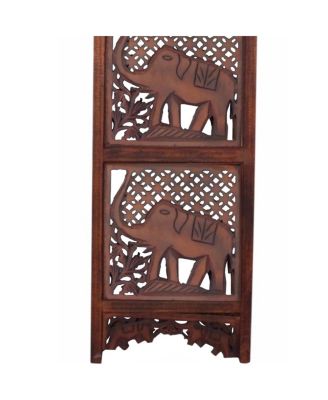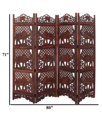 Hand carved 5-Panel Room Divider Gray 78.7"x65" Solid Mango Wood