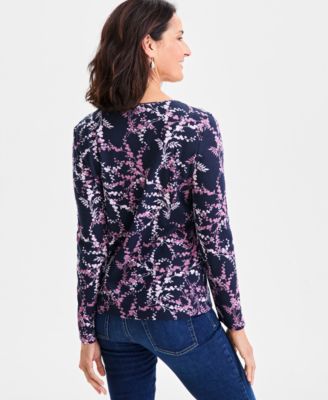 Women's Printed Boat Neck Long-Sleeve T-Shirt, Exclusively at Macy's