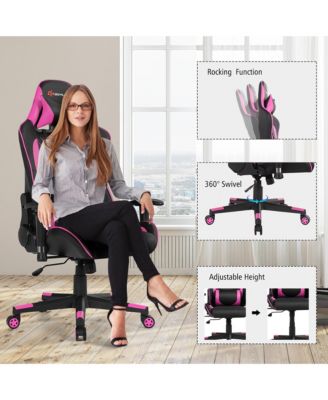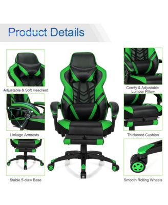 Gaming Chair Racing Style Swivel Chair with Footrest and Adjustable Lumbar Pillow
