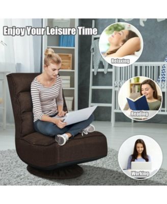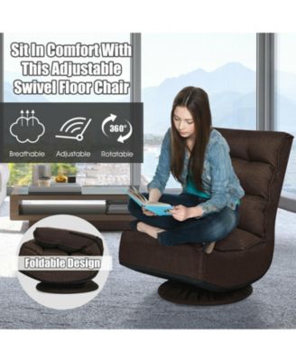 360-Degree Swivel Gaming Floor Chair w/ Armrest Handles, Foldable Adjustable Back