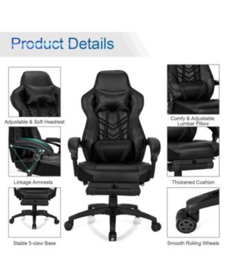 Adjustable Gaming Chair with Footrest and Lumbar Cushion for Office