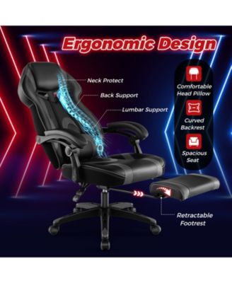Ergonomic Gaming Chair -Recline Back/Arms, Footrest, Massaging Lumbar