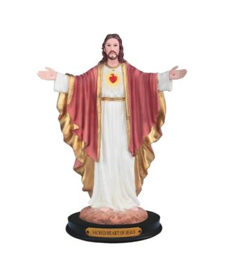 "2-PC Gift Set" 12"H Sacred Heart of Jesus with Open Arms Statue Holy Figurine Statue Ornament Home Room Office Decor and Perfect Gift Ideas for Housewarming, Holidays and Birthdays