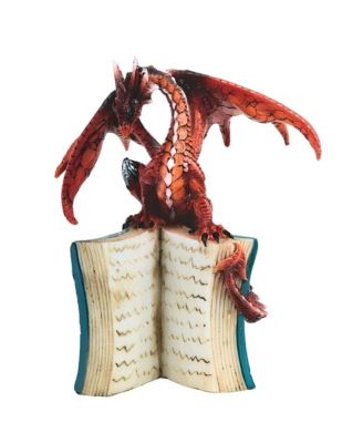 "2-PC Set" 6"H Red/Orange Volcano Dragon Standing on an Open Books Figurine Statue Ornament Home Room Office Decor and Perfect Ideas for Housewarming, Holidays and Birthdays