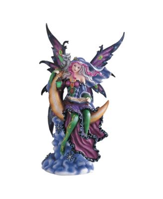 "2-PC Set" 12"H Purple Fairy on The Moon Figurine Statue Ornament Home Room Office Decor and Perfect Ideas for Housewarming, Holidays and Birthdays