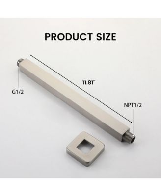 Square Shower Arm - 304 Stainless Steel, Universal 1/2" NPT Thread, Easy Installation, Corrosion-Resistant, and Decorative Cover
