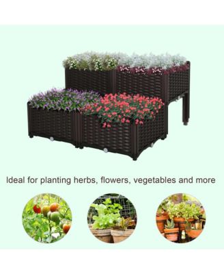 4-Piece Raised Garden Bed with Self-Watering Planter