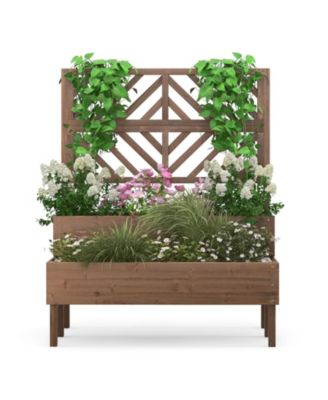 Raised Garden Bed Wooden Elevated Planter Box with Lattice Trellis