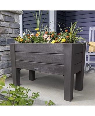 Rectangular Plastic Raised Garden Bed Planter Box - Cedar Wood Finish