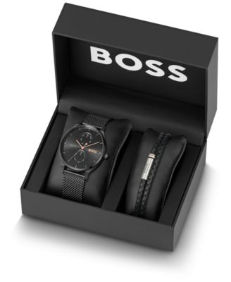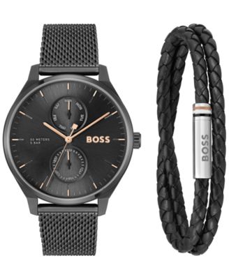 Men's Black Leather Strap Watch 42mm