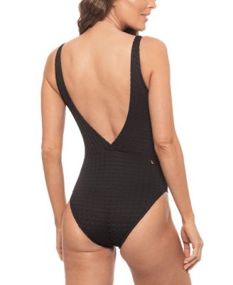 Women's Crinkle Lurex Ring V Neck One Piece Swimsuit