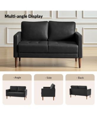 Drake Mid-century Modern Faux Leather Sofa with Movable Backrest Cushions