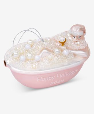 Pastel Shine Pink Bathtub Santa Ornament, Macy's Exclusive