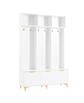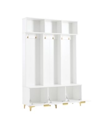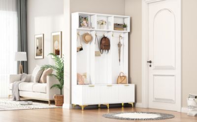 Streamdale High Gloss Fluted Storage Hall Tree with Gold Accents