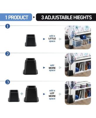 Adjustable Stackable Bed Frame Risers for Elevation & Under-Bed Storage - Heavy-Duty Furniture Riser for Table, Couch, Desk, and Chair - Set of 4 Large & 4 Small Bed Lifts - Black