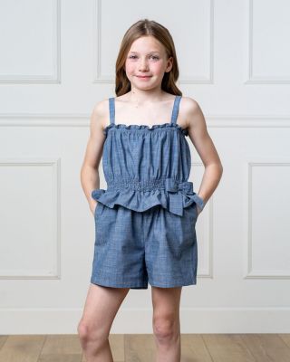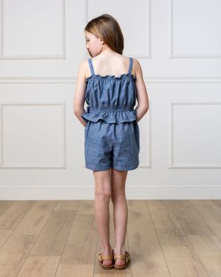 Toddler Girls Sleeveless Smocked Waist Chambray Romper