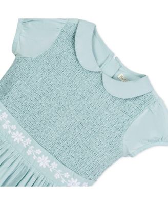 Baby Girls Organic Puff Sleeve Smocked Party Dress with Peter Pan Collar