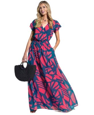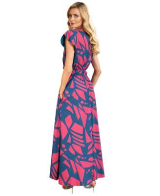 Women's Abstract Print Chiffon Faux Wrap Maxi Dress