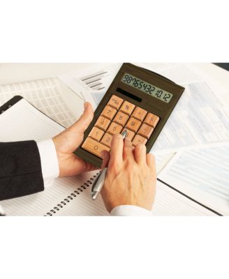 CB1203 12-Digits Bamboo Custom Carved Desktop Calculator - Walnut Color