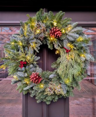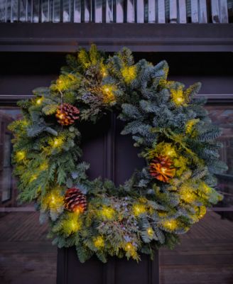 Traditional Noble Fir Fresh Wreath with Warm Lights, 28"
