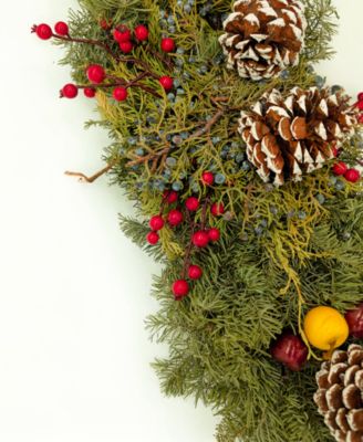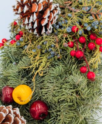 Fresh Noble Fir Berried Juniper Centerpiece with Faux Berries and Faux Apples