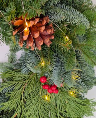 Traditional Noble Fir Fresh Wreath with Warm Lights, 22"