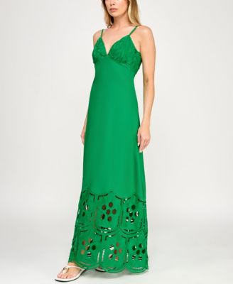 Juniors' Halter Sleeveless Crochet Midi Dress