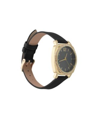 Women's Analog, Three-Hand Quartz Black Polyurethane Strap Watch 34mm Gift Set